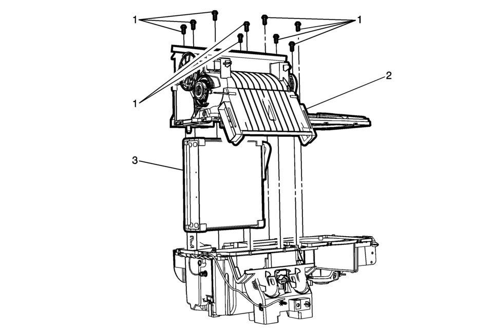 Upper Heater and Air Conditioning Evaporator Case Fasteners (Qty: 9) Caution: Refer to Fastener Caution. |
