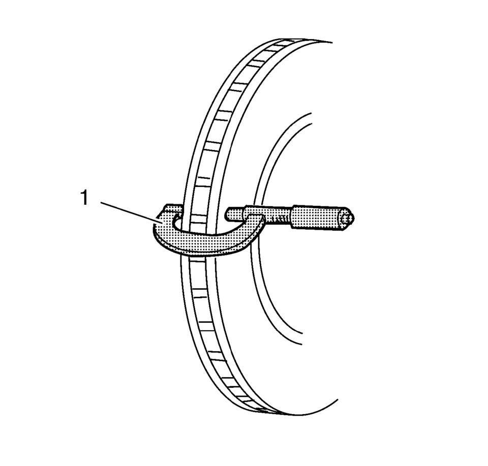 Make sure that the measurements are only taken within the friction surfaces and that the micrometer is positioned the same distance from the outer edge of the brake rotor, about 13 mm (1/2 in), for each measurement.