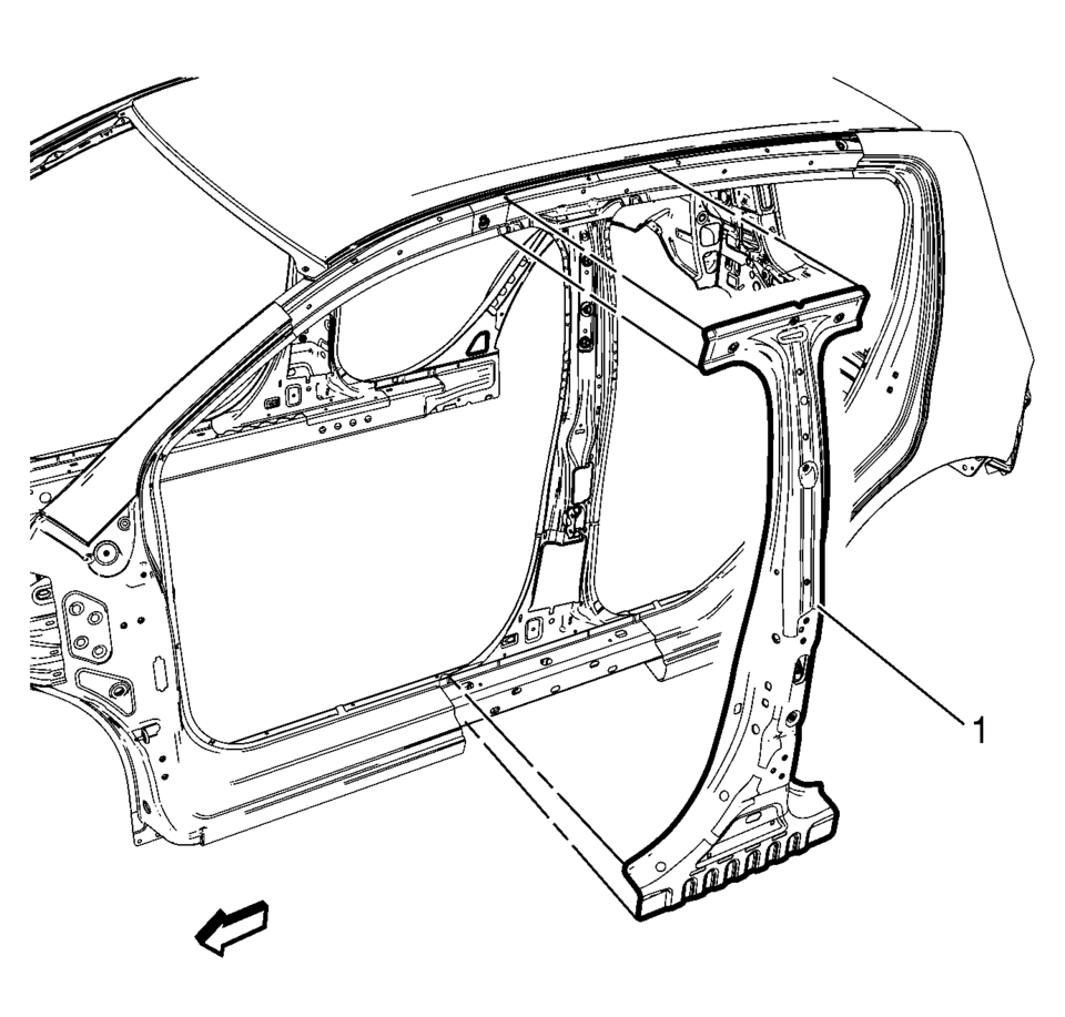 The center pillar upper stiffener is made of Dual Phase Steel and should be replaced only at factory joints. Repairing or sectioning of this part is not recommended. Refer to Dual Phase Steel.