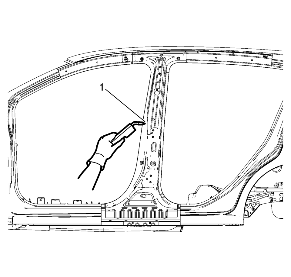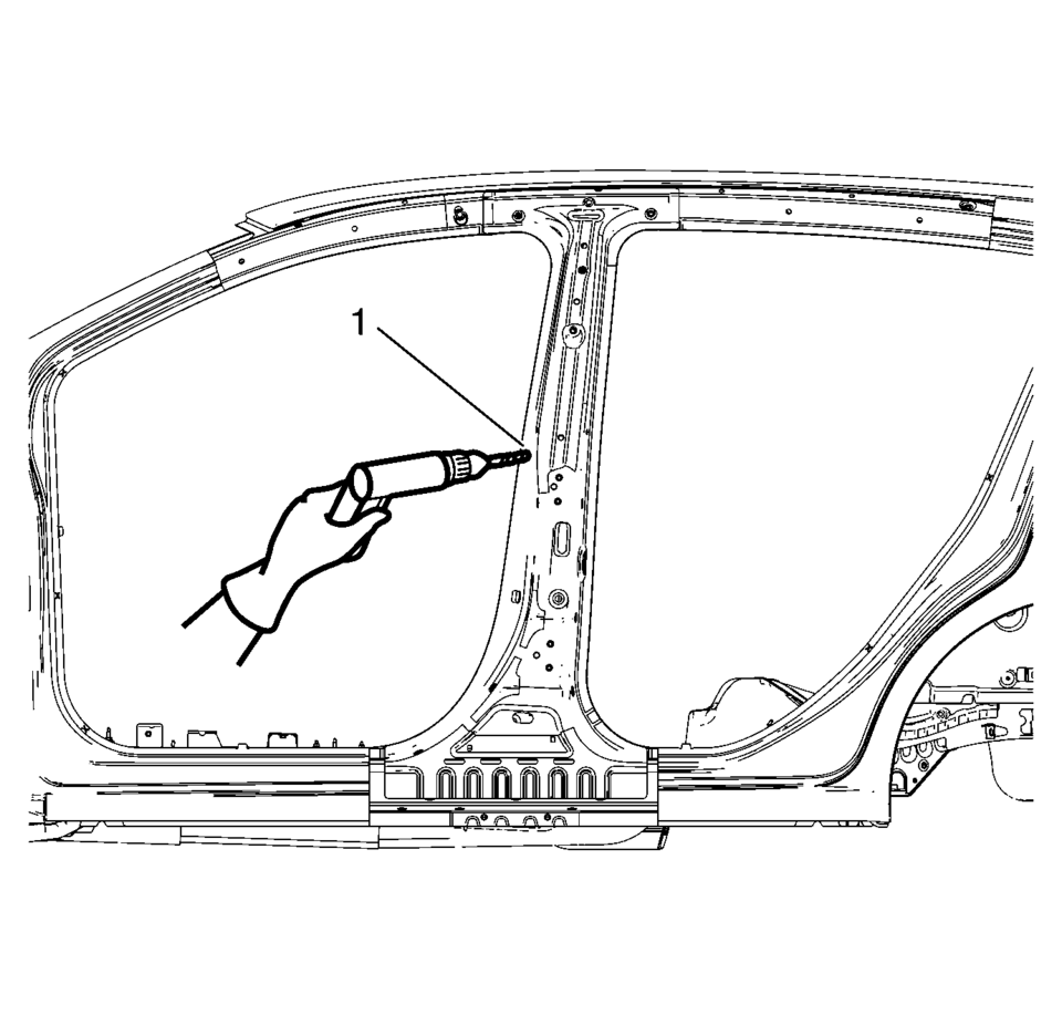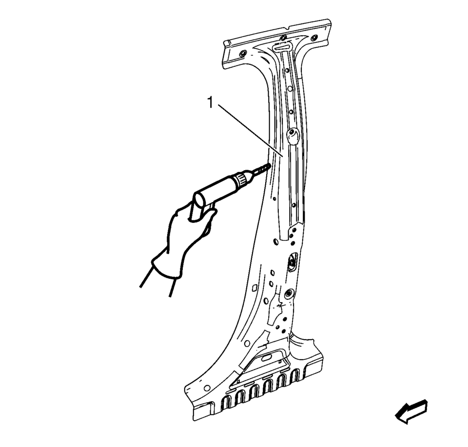 holes for plug welding along the edges of the center pillar reinforcement as noted from the original panel (1).