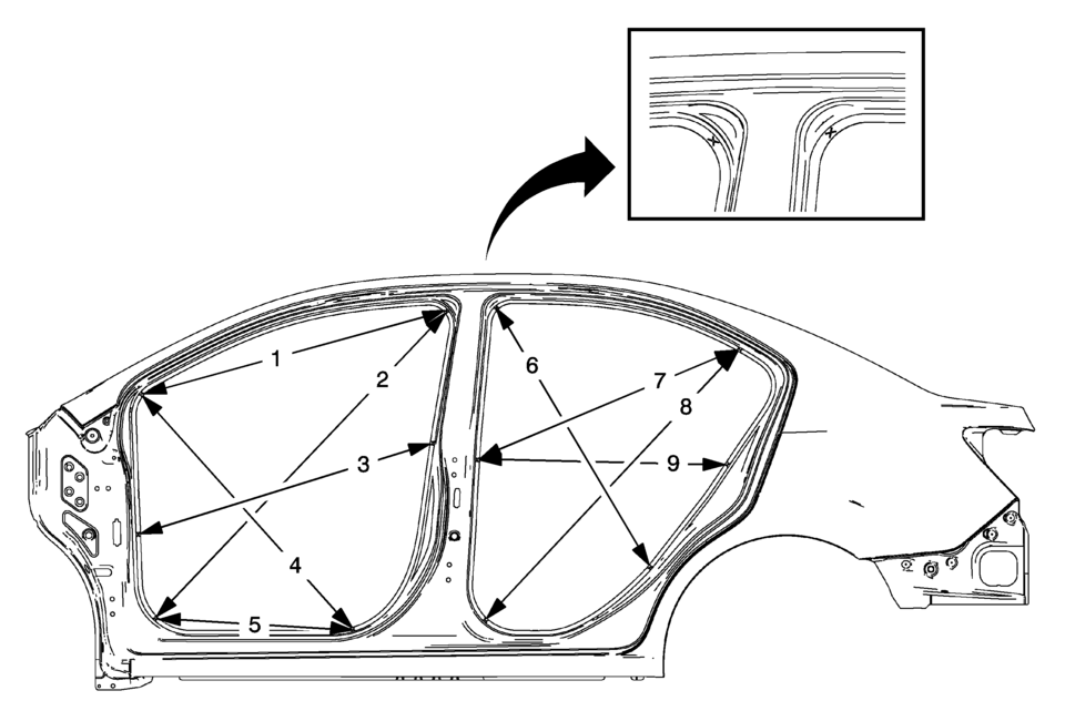 Dimensions - Body (5HB)Rear Side Door Weatherstrip Replacement - Body Side