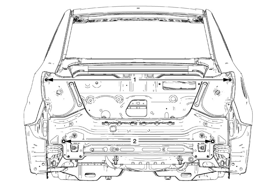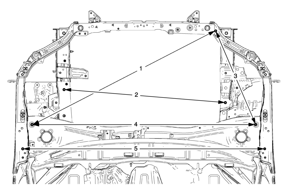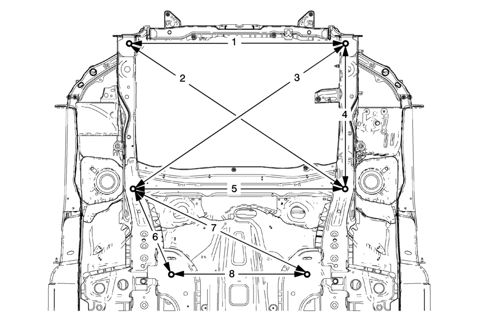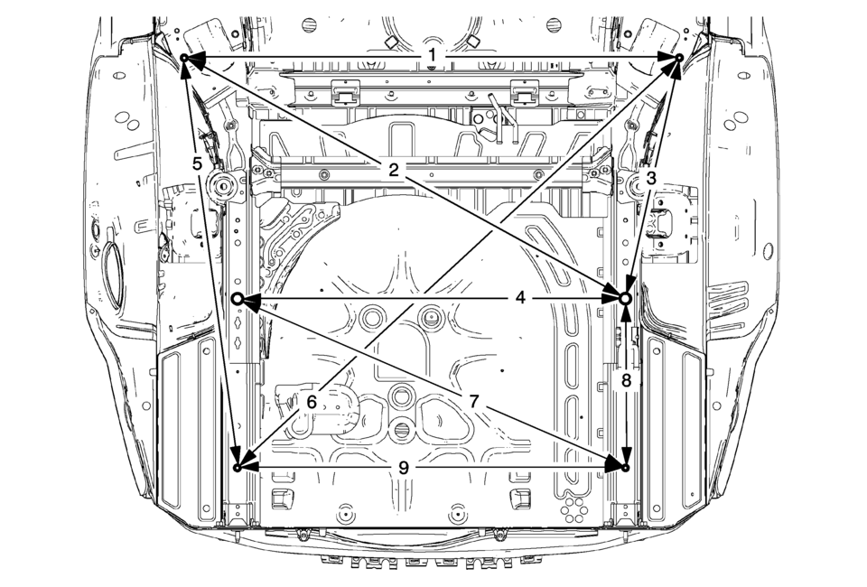 Point-to-point measurements are for reference only. All measurements are given in millimeters. Use these measurements for diagnosing and estimating. Point-to-point measurements are duplicated with tram bar pointers set at equal lengths. All die marks, holes, slots, and fasteners are measured to the center. All dimensions are symmetrical unless otherwise specified.