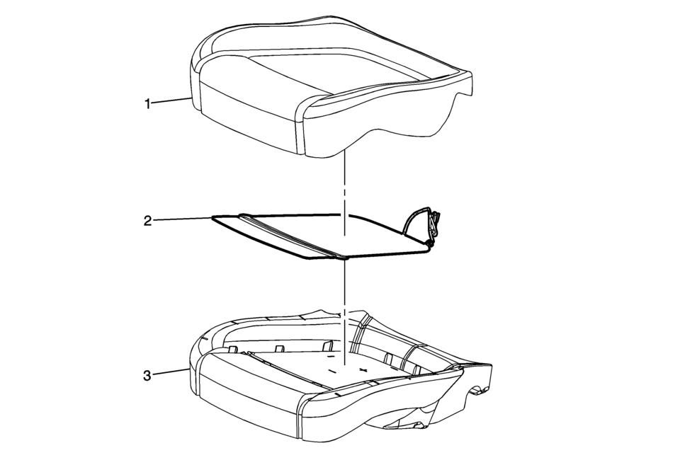 Front Seat Cushion Pad Note: The seat belt presence sensor and heat mat, if equipped are integral parts of the seat cushion pad. |