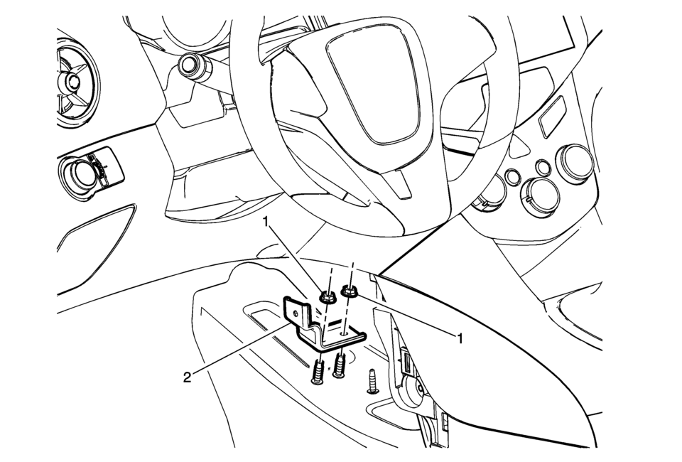 Remove the left front floor console extension panel. Refer to Front Floor Console Extension Replacement - Left Side. |
