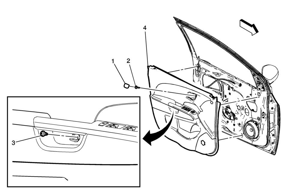 Front Side Door Inside Handle Fastener Caution: Refer to Fastener Caution. |