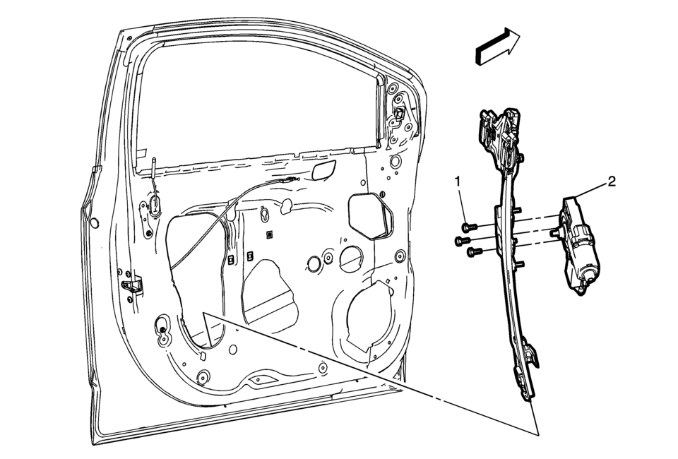 Remove the front side door window regulator. Front Side Door Window Regulator Replacement. |
