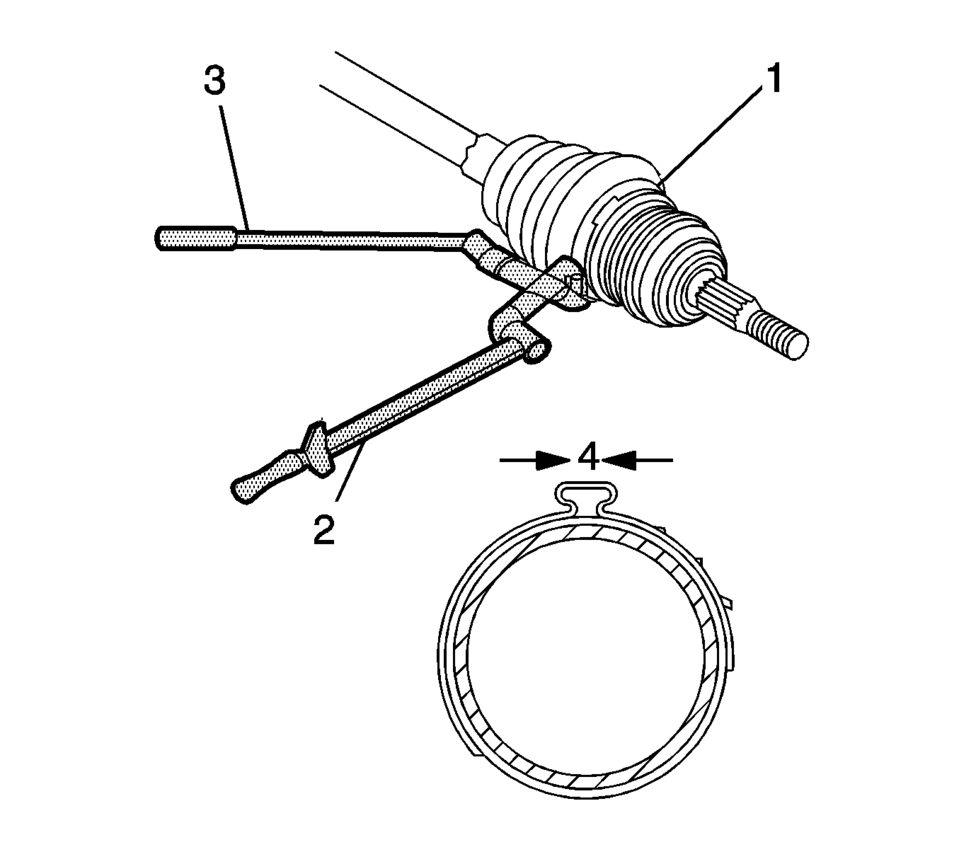 - Using a pair of side cutters, remove the outer boot clamp (1) and the