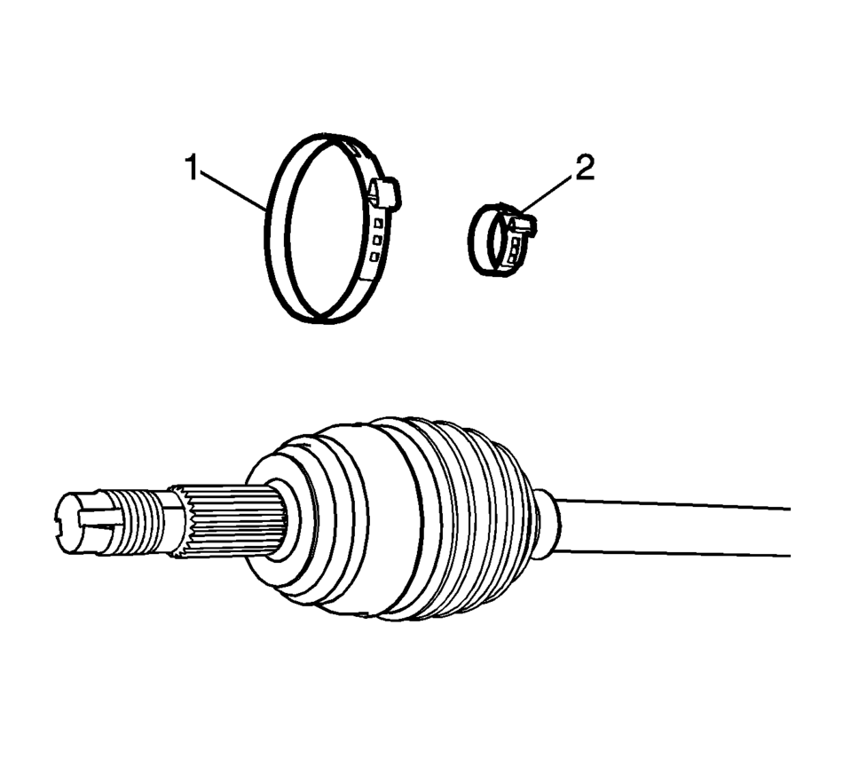 - Discard the boot clamps (1) and (2). Use NEW clamps only.