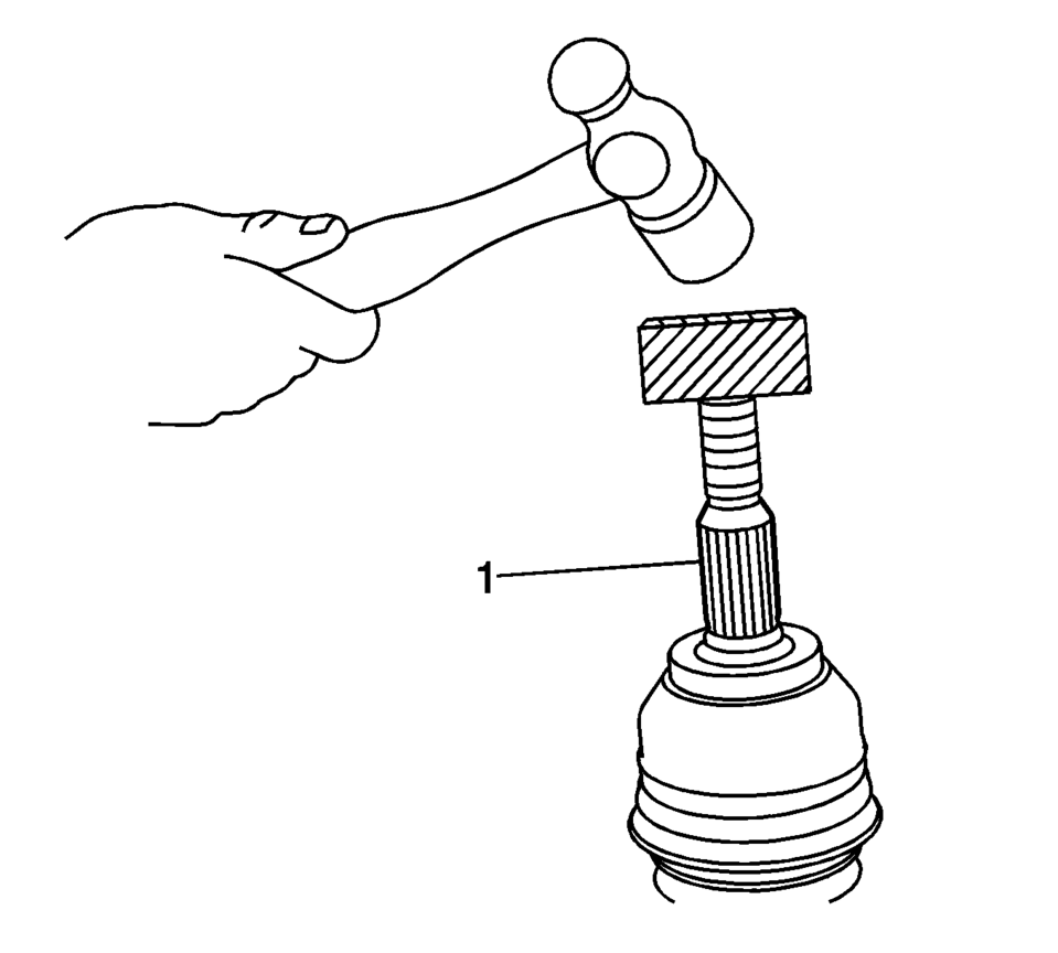 - Using a block of wood and a hammer, install the CV joint (1) on the