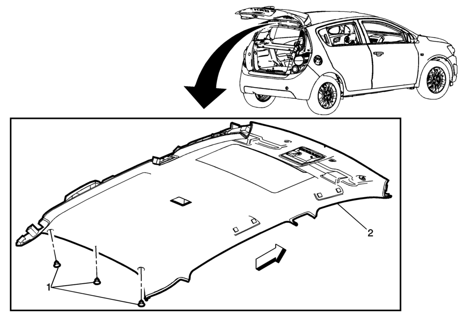 Headlining Trim Panel Replacement (Hatchback without Sunroof)Speaker Replacement Reference