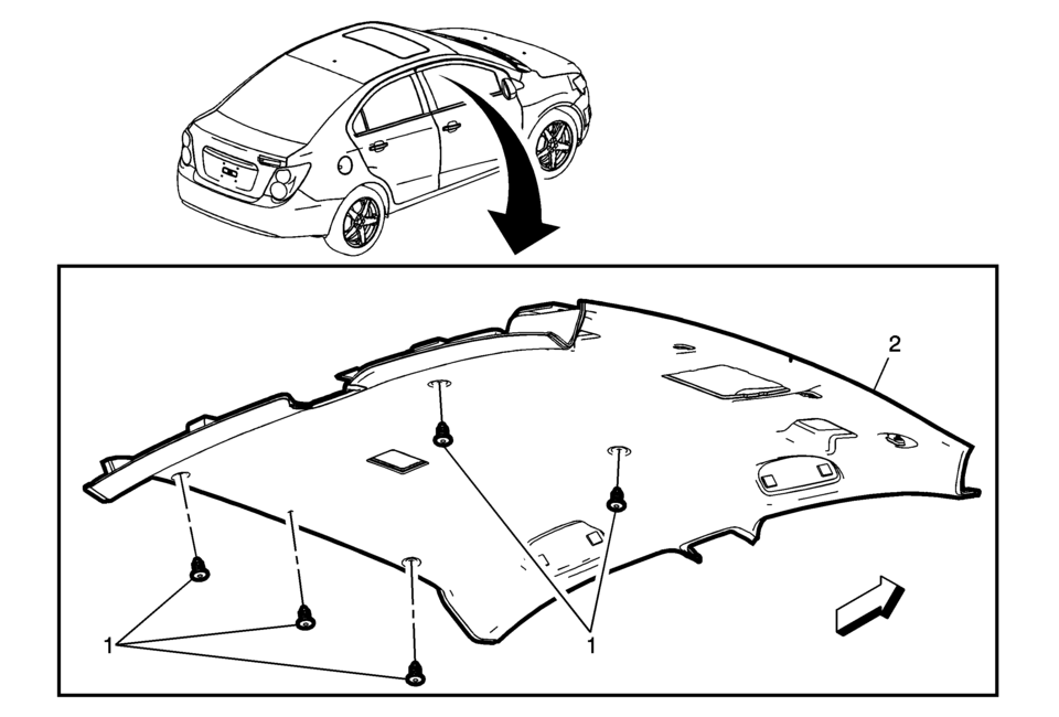 Headlining Trim Panel Replacement (Sedan with Sunroof)