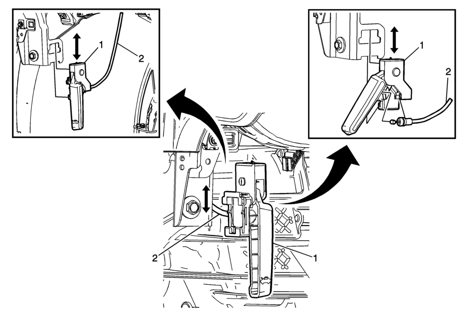 Press the release cable handle upward to release the retainers from the instrument panel bracket. |