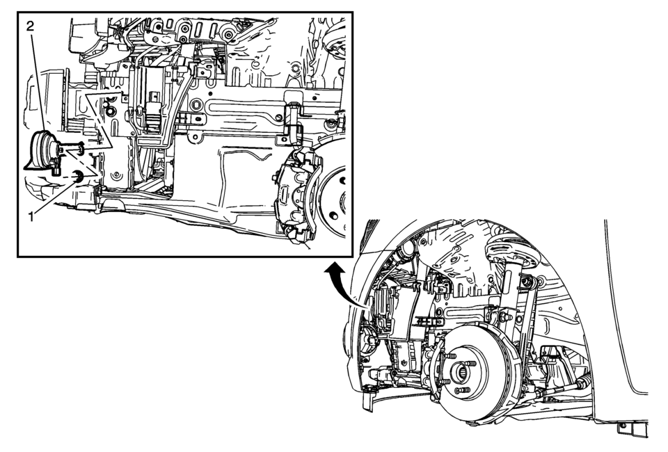 Remove the front wheelhouse liner front. Refer to Front Wheelhouse Liner Replacement. |