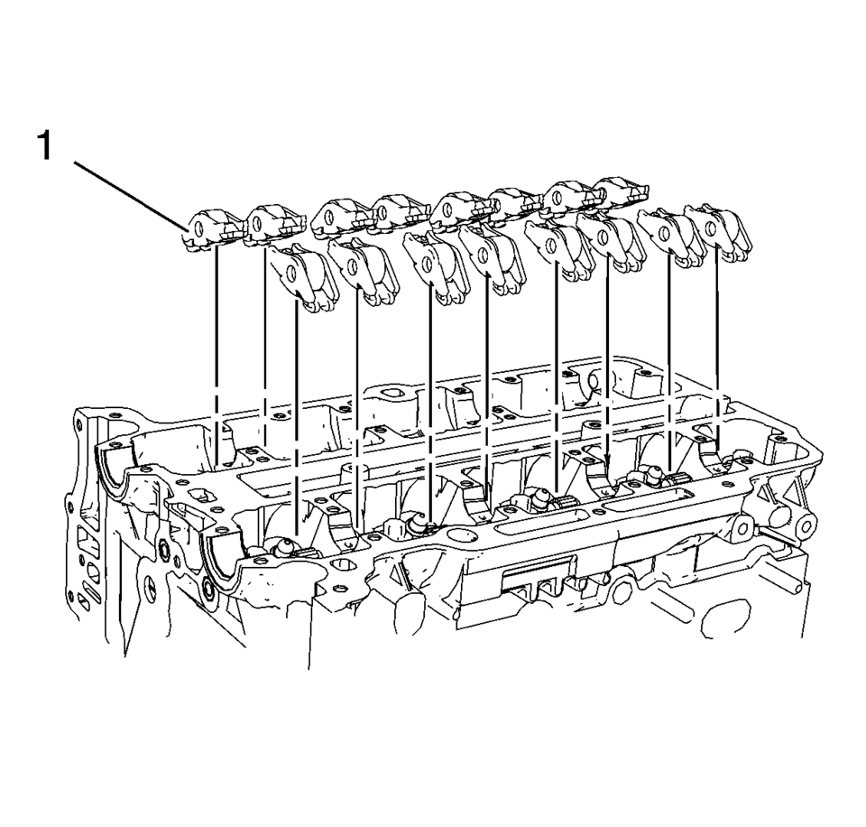 Remove the 16 hydraulic valve lash adjuster arms (1).