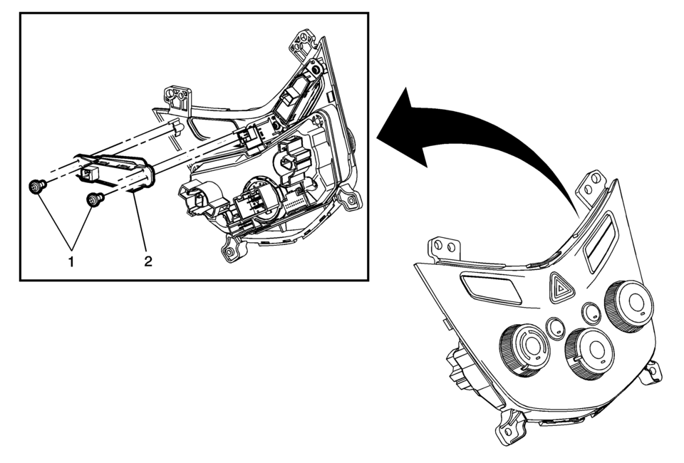 Remove the heater and air conditioning control. Refer to Heater and Air Conditioning Control Replacement. |