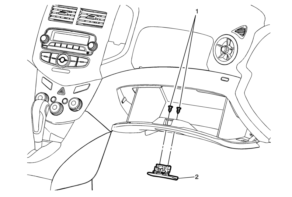 | 1 | Instrument Panel Compartment Door Latch Fasteners (Qty:?€‰2) Caution: Refer to Fastener Caution. |