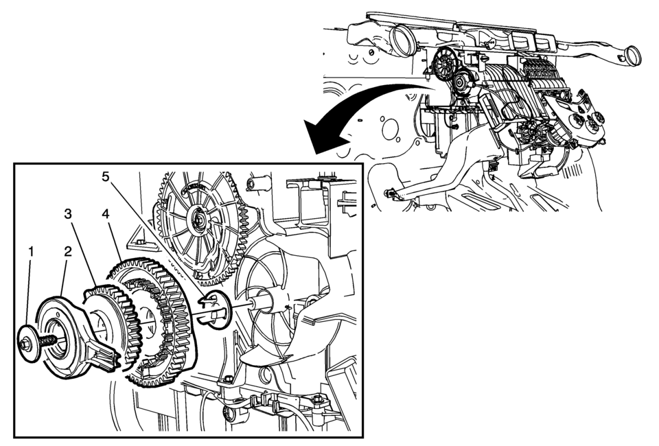 | 1 | Heater and A/C Control Mode Cam Screw Caution: Refer to Fastener Caution.