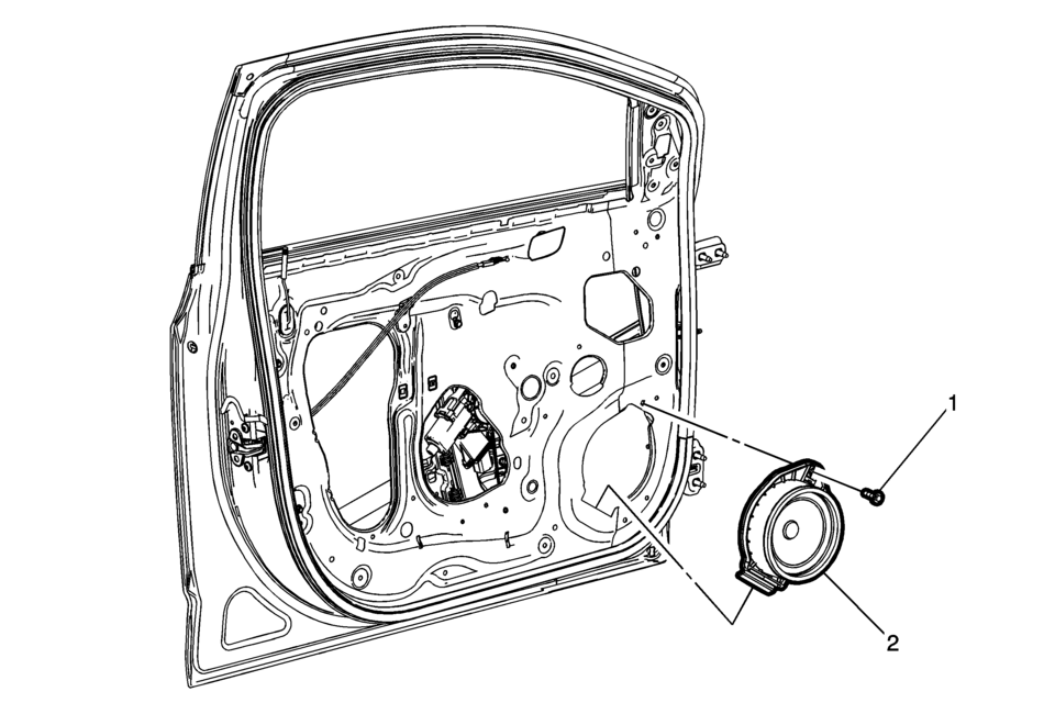 | 1 | Radio Front Side Door Speaker Bolt Caution: Refer to Fastener Caution. |
