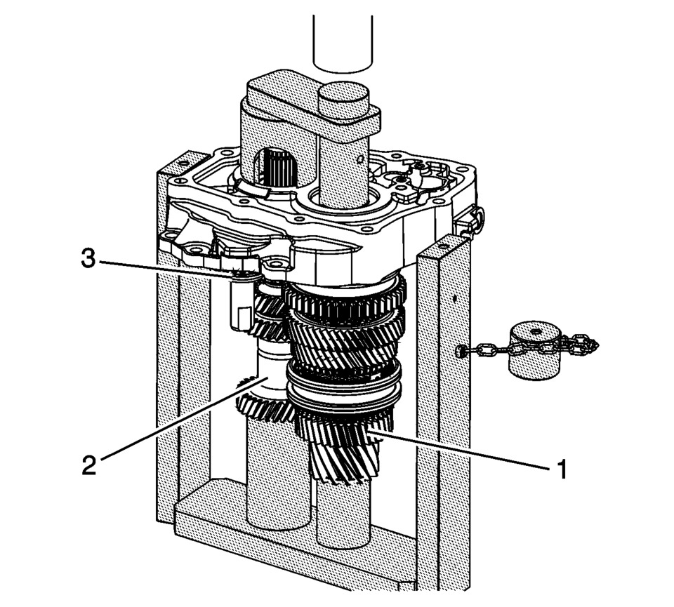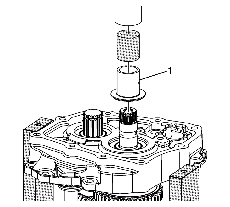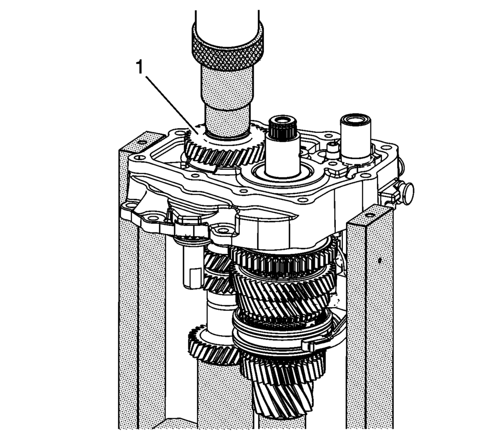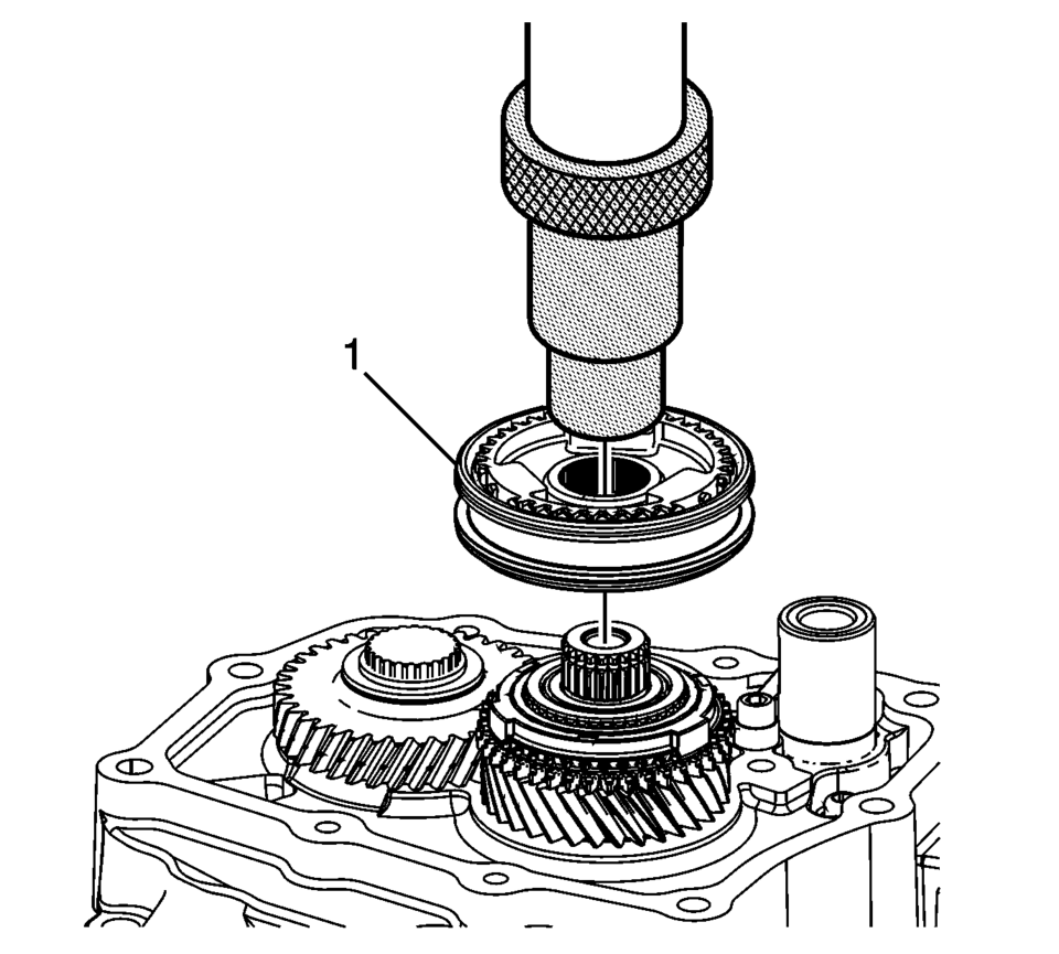 Using J-840733 driver, press the 5th gear, driving (1) onto the input
