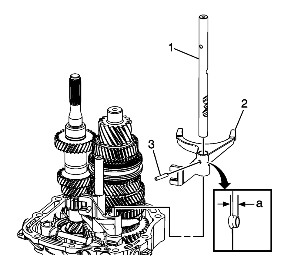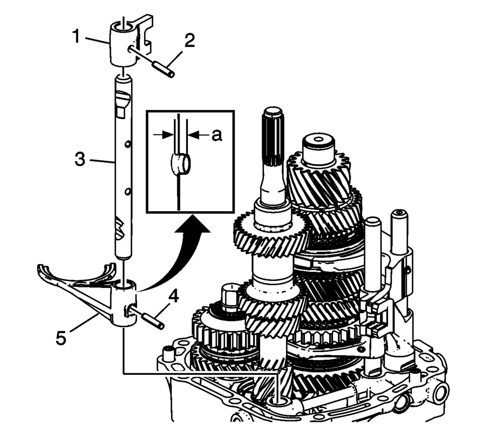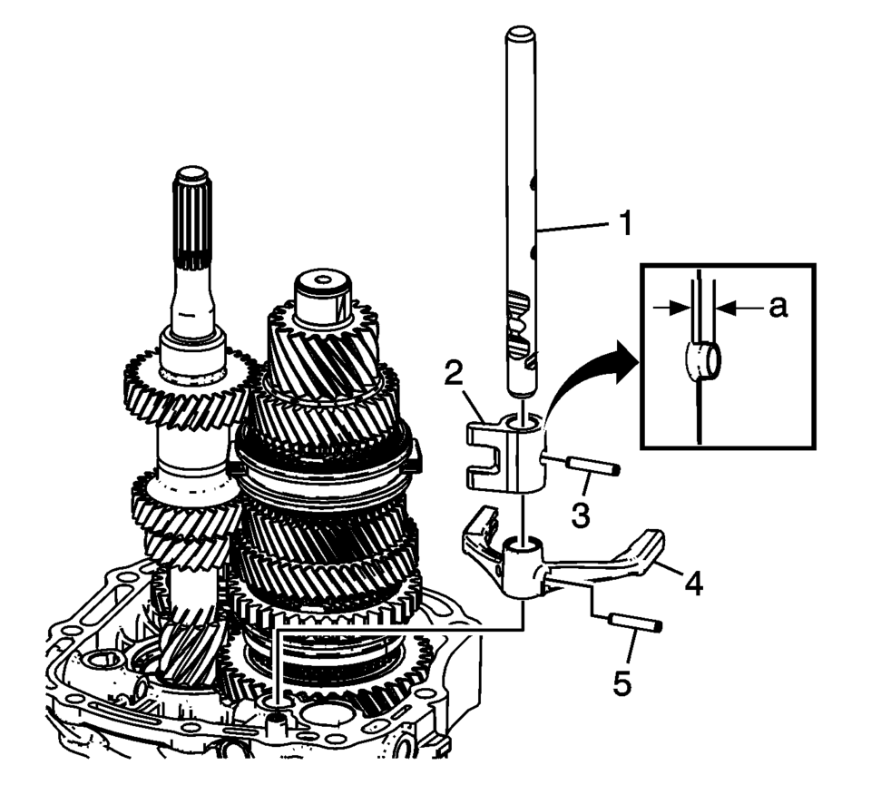 Install the reverse shift fork pin (4) to the dimension ??depth of 2 mm