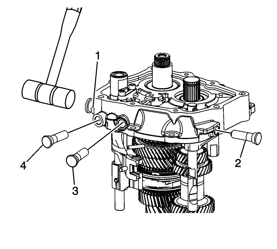 Using a plastic hammer or equivalent install the 4 shift shaft detent sleeves (1?)