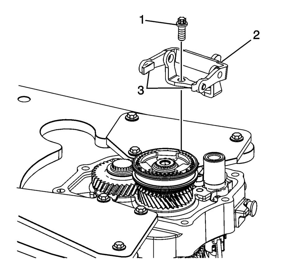 Using thread locking compound install the 5th shift fork bracket bolts (1) and